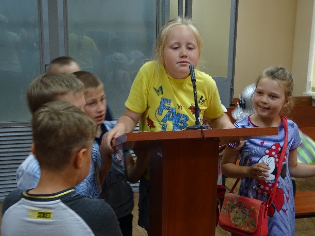 Біля приміщення суду школярів зустріла в.о. прес-секретаря суду Коровіна Олена, яка розповіла дітям про правила поведінки в суді та запросила дітей до залу судового засідання. З вітальним словом до дітей звернувся суддя-спікер Герцов Олександр, розповів історію створення суду, легенду про Феміду, продемонстрував атрибути судової влади.