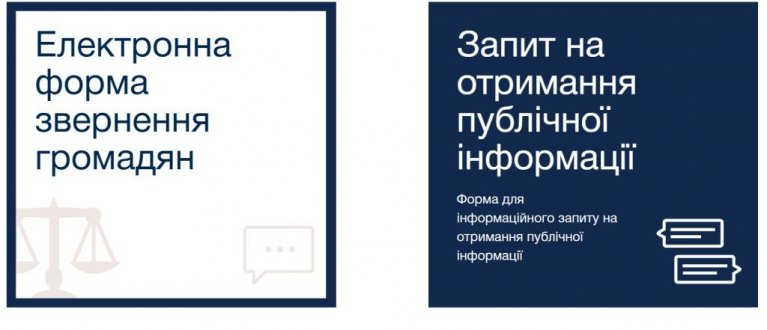 На головних сторінках сайтів судів, в тому числі Вишгородський районний суд Київської області розміщено «Електронна форма звернення громадян» та «Запит на отримання публічної інформації».