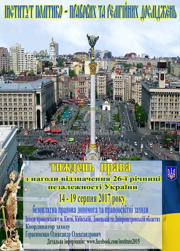 Тиждень права з нагоди відзначення 26-ї річниці незалежності України відбуватиметься з 14 по 19 серпня 2017 року.